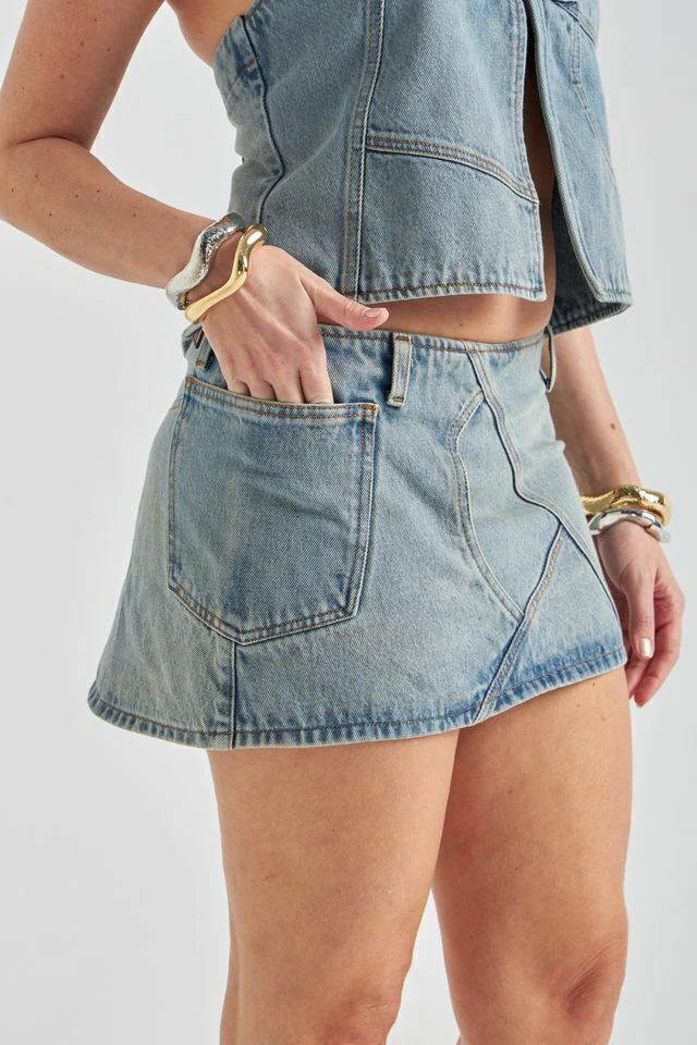 A Saia Vivian é a escolha perfeita para mulheres que amam unir estilo e autenticidade em um look marcante. Com modelagem mini e caimento impecável, ela é confeccionada em jeans de lavagem clara, conferindo um ar moderno, despojado e super fashionista. O design com recortes estratégicos e costuras aparentes valoriza a silhueta, enquanto os bolsos amplos trazem funcionalidade sem abrir mão do charme.