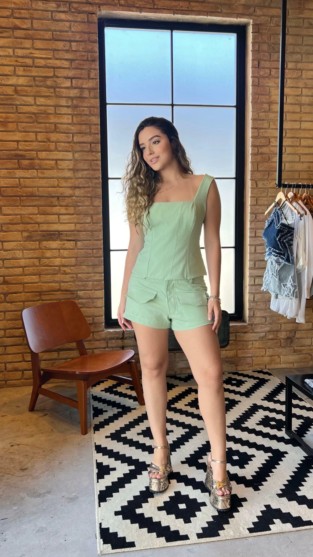 O Short Poliana é a união perfeita entre conforto e estilo utilitário moderno, ideal para mulheres que amam peças marcantes e versáteis. Com modelagem ajustada e bolsos frontais com lapela, ele entrega um visual urbano, feminino e contemporâneo — tudo isso em um tom verde-claro suave, que traz frescor e elegância para os dias mais quentes.
